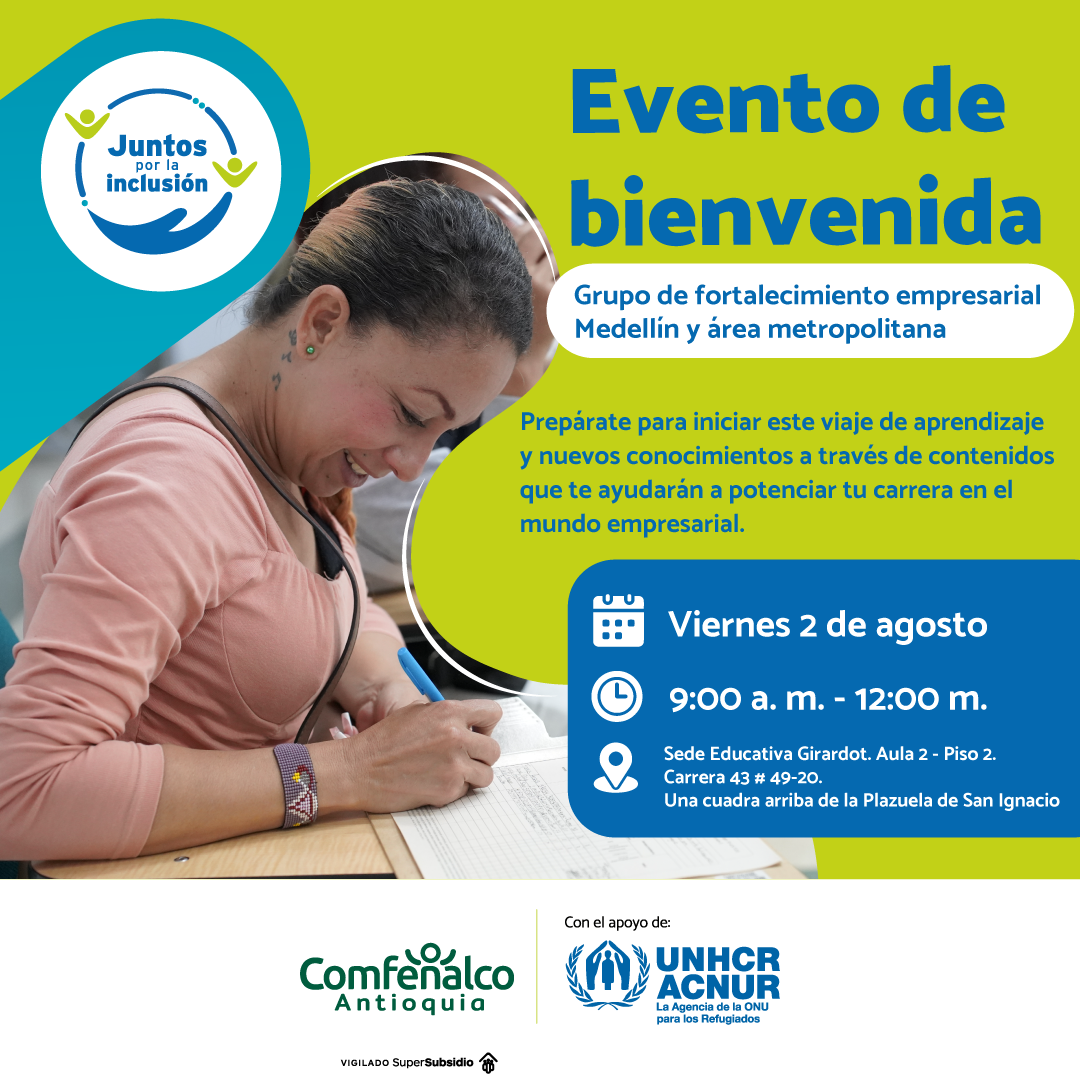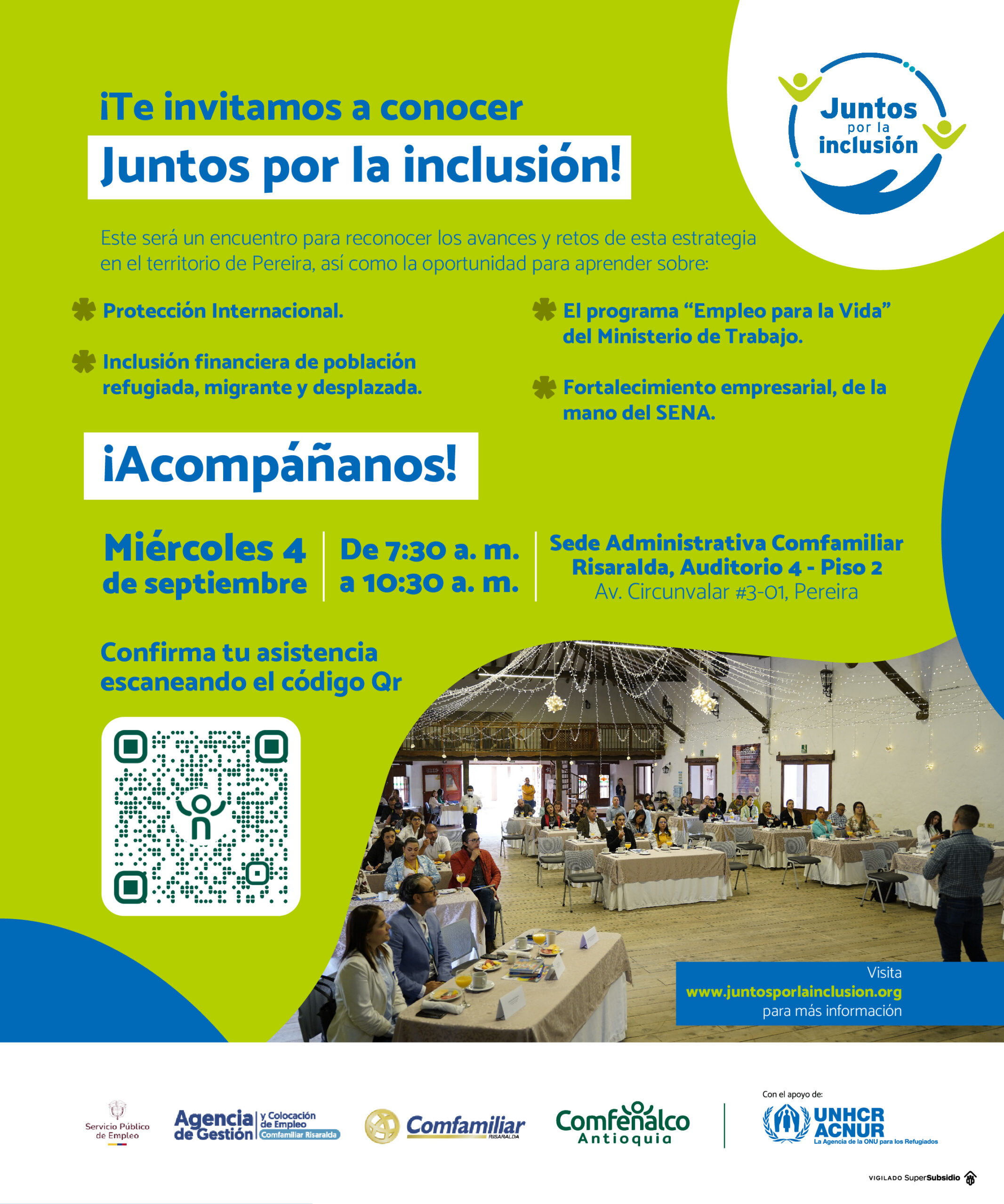 Biblioteca EPM Carrera 54 n.° 44 48, Medellín, ColombiaEn el marco de la conmemoración del Día Mundial de las personas Refugiadas y Desplazadas, desde Juntos por la inclusión extendemos esta invitación para que asistas a este importante encuentro que enfatiza en el papel vital del sector privado para la integración socioeconómica de las personas refugiadas, migrantes y desplazadas en nuestro territorio.