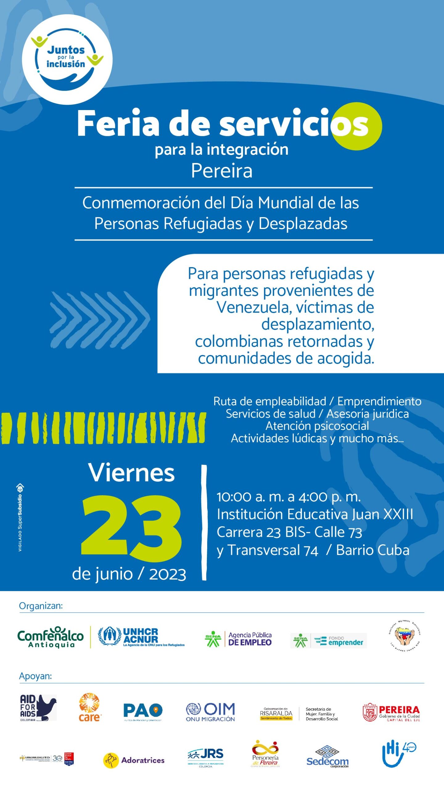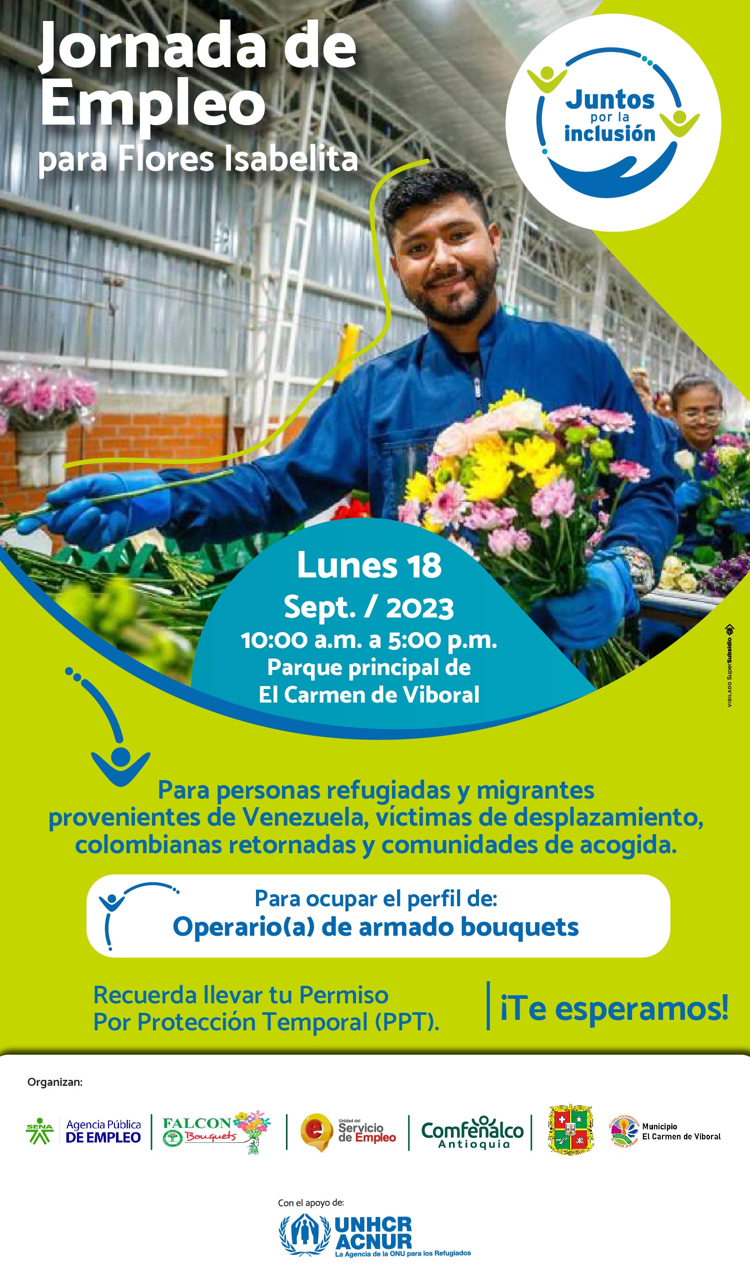 Oportundidades laborales para las poblaciones migrantes, refugiados, víctimas del conflicto armado, colombianos retornados y comunidad de acogida.