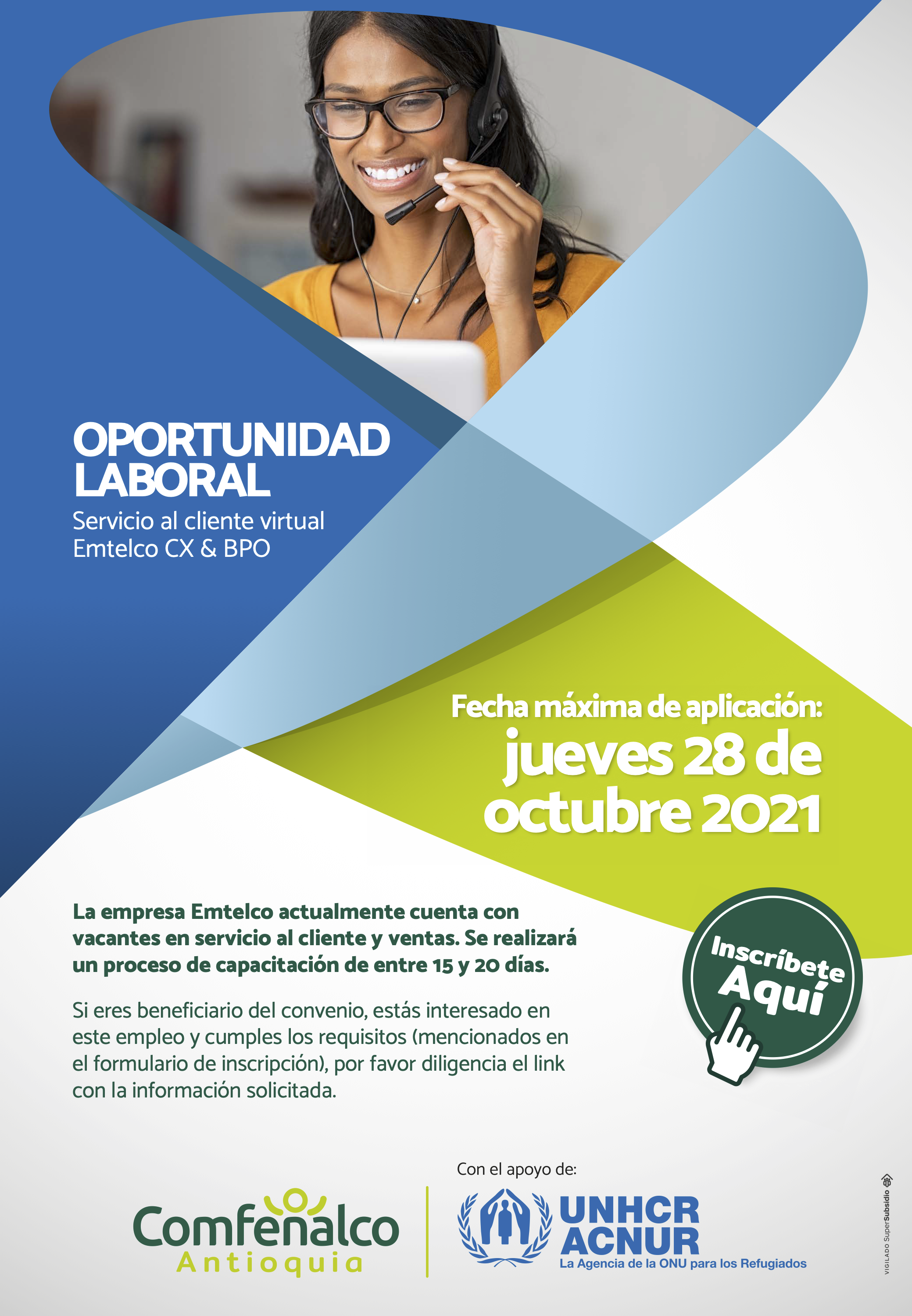 Comfenalco Antioquia, con el apoyo de la Agencia de la ONU para los Refugiados ACNUR, ejecuta el proyecto «Apoyo a la diversificación de oportunidades y generación de medios de vida en Antioquia» mediante el cual se busca fortalecer las capacidades y habilidades de la población refugiada, solicitante de refugio, migrantes que llegan o transitan desde Venezuela, colombianos retornados, comunidad de acogida y población desplazada.